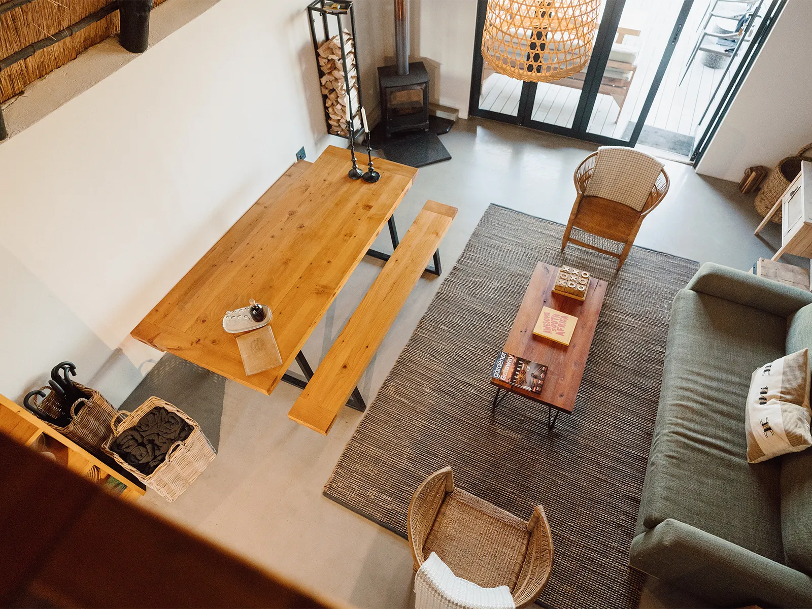 Zebra Lodge has two en suite rooms, one with an outside shower. Both open onto a deck with stunning views of the valley. The third room sleeps 3 in a quaint loft above the lounge – best-suited to children.